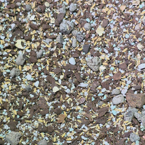 Packed with tree fern fiber, orchiata bark, perlite, geolite, zeolite, vermiculite, calcined clay, rice hulls, worm castings, biochar, myco fungi, and quite a few proprietary secrets.
