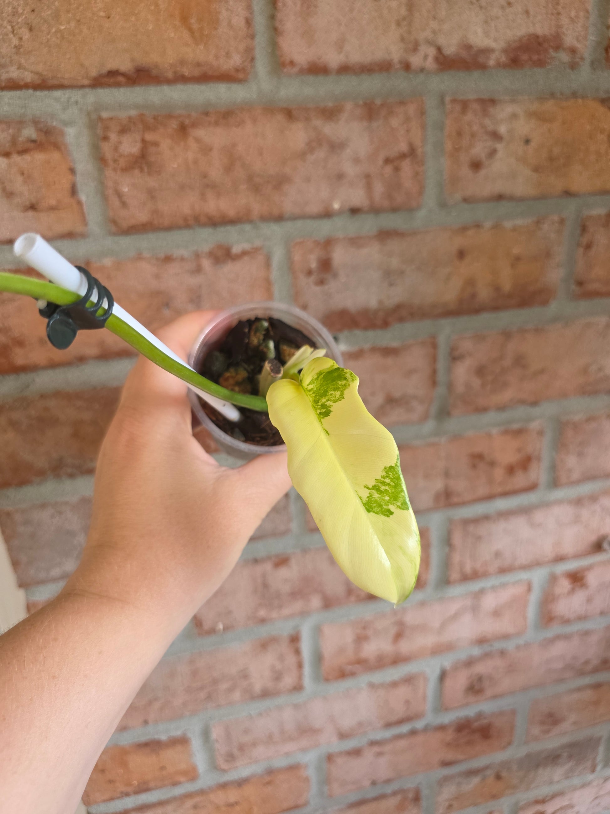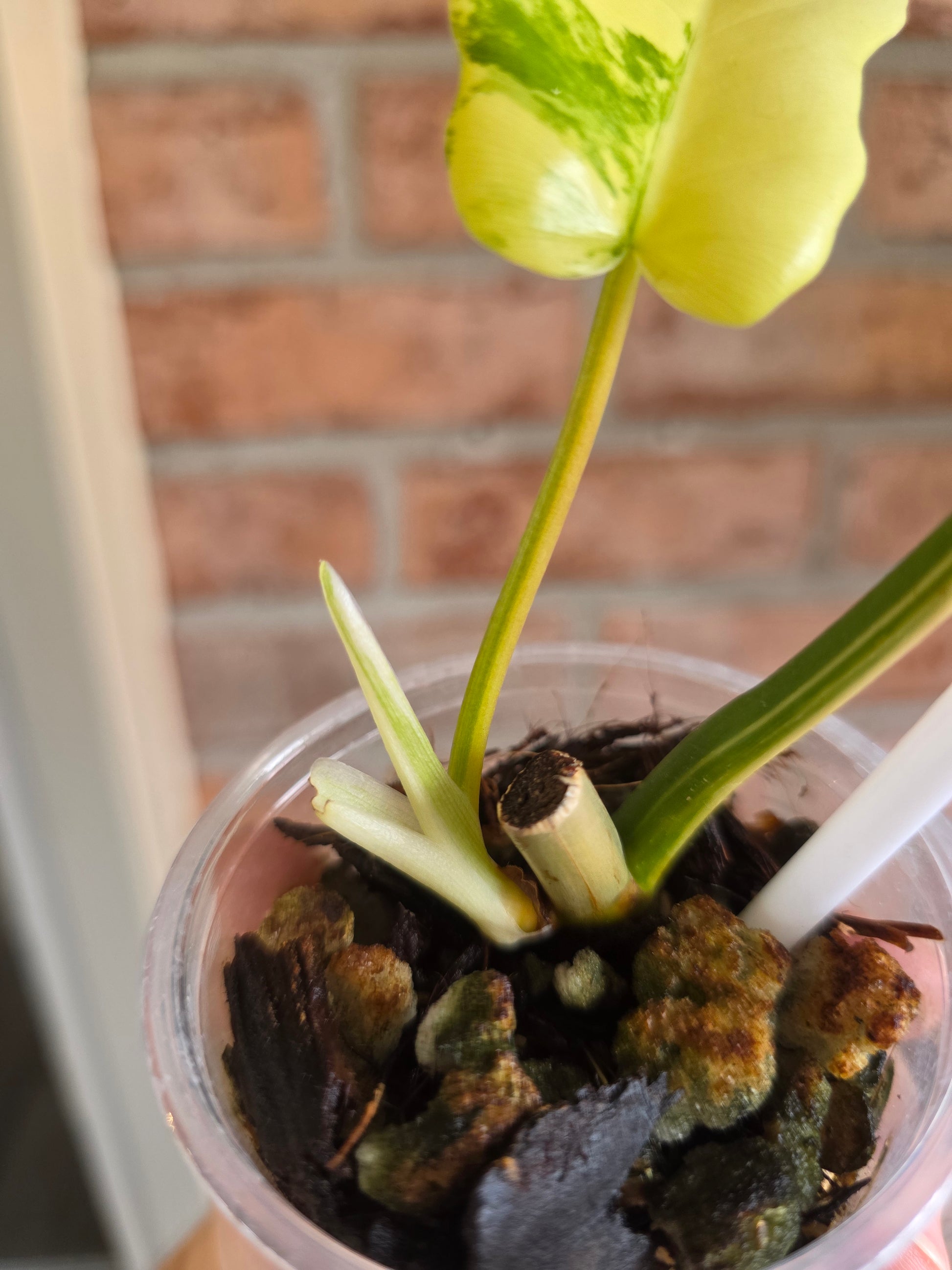 Highly Variegated with new leaf and another on the way. Rooted and growing in THICK AF.Â